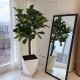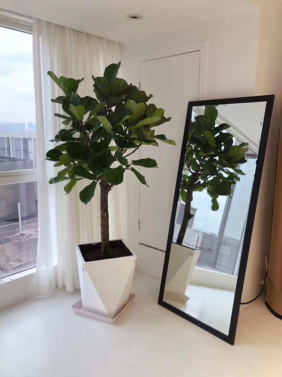 琴叶榕叶片厚革质, 深绿色, 具光泽, 全缘常呈波状起伏,叶脉凹陷, 节间较短, 叶片密集生长, 蓬勃向上, 具较高的观赏价值, 是理想的大厅内观叶珍品。